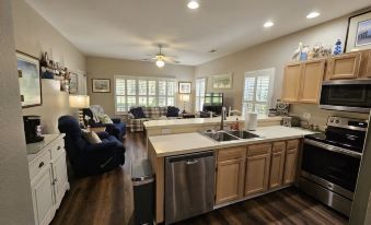 Our family of 8 was so very happy to have stayed in this wonderful condo! Having 2 floors of living space gave us plenty of room....2 kitchens, 2 laundry rooms, 2 family rooms, and the 4 beds and 4 baths! The decor is nicely appointed and apon arrival all was very clean. I cant say enough about how generously the owner provided kitchen, bath, and cleaning supplies! This is truly rare in most condos. I must add that the owner communicated his desire to make certain we had a wonderful time and was willing to correct any problems that might occur. He is truly a top notch host. Because we enjoyed the stay so much, I have booked this condo again for next year!