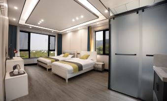 房間乾淨整潔,家庭出遊方便,有游泳池,老闆人特別好看我們帶孩子送些當地板栗嚐嚐,還在裏面免費打麻將桌球,裝修挺不錯的,