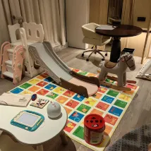 La stanza è abbastanza grande, molto adatta per portare un bambino, ha mattoncini da costruzione e un tavolo da disegno. La reception ha anche regalato una piccola macchina al bambino. Il bambino si è divertito molto a giocare da solo non appena è entrato . Il viaggio di tre ore da Nanchino è stato piuttosto faticoso. Al bambino sono stati dati dei giocattoli, così ha avuto il tempo di fare una pausa