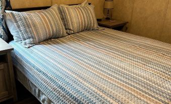 When you're not exploring the nearby attractions you can indulge in the comforts of a fully stocked kitchen, complete with stove, oven, refrigerator, and all the necessary appliances and utensils. Savor your meals at the dining table, or gather around the fire pit & utilize permanent outdoor charcoal grill for a cozy evening under the stars.