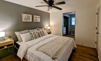 The fully equipped kitchen, with high end finishes and cookware (All-Clad, LeCreuset, Henckels, Staub) invites culinary adventures, while the spacious living room offers ample seating for relaxation, complete with a streaming TV for entertainment. You'll feel the authentic mid-century design elements as soon as you enter, with many rehabilitated vintage pieces throughout. This property features three extremely stylish bedrooms, each with a desk, thoughtfully decorated with relaxation in mind, ensuring a restful stay. The enormous primary suite includes a king-sized bed, a walk-in closet and dressing room with a reading nook a desk/make-up vanity, and full private bathroom.