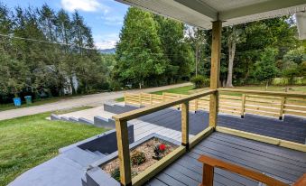 The massive screened-in sunroom with large sliding glass doors and windows, is a charming extension of the living space, featuring a large dining table and additional seating, along with an electric fireplace and yet another streaming TV, creating a versatile and cozy atmosphere. Outside, evenings come alive around the stylish fire table, creating the perfect space to unwind beneath the evening sky. We welcome you to bring your four legged family members, with a completely secured fenced yard, and doggie doors, they'll feel right at home. Grovemont Retro Retreat is the perfect spot, promising an unforgettable retreat in the North Carolina's mountains.