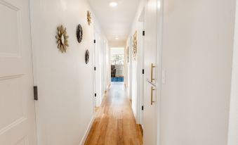 The layout of our home ensures privacy and comfort for all guests. Three bedrooms are neatly situated along the hallway, creating a peaceful and serene space for restful nights. On the opposite end of the house, you'll find the primary retreat, which offers a serene oasis away from the hustle and bustle. Located adjacent to the kitchen, it's conveniently accessible yet separate from the main sleeping quarters, giving you a tranquil space to unwind.
