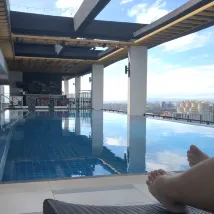 The room smells old. The dryer/washer is tricky in order for it to run.The house keeping doesn’t check the body wash. We can’t use the tv because the Netflix needs update,we tried everything and it doesn’t work. Even the housekeeping clean the room, it doesn’t smells clean. We enjoyed the bar in the rooftop.The location is really good.There’s no warning that the water boiler gets really hot even the handle.