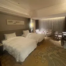 The room is very spacious. It's also clean. A welcome fruit plate is also prepared. It's very thoughtful. The staffs are extremely friendly and helpful. I special thank to them helping me to book a taxi as my WeChat not able to call one.
