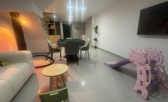 整體感覺還行,樓下大堂毛坯剛進去有點懵,房東自營幾個房間吧。公寓的設計和裝修花了點心思的,一樓茶桌旁加張沙發就完美。有洗衣機和陽台,親子出遊挺方便。