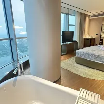 a nice view of the river room at the highest with the warmess Mr 孔, Desk Manager. I highly recommend this hotel. At the ground floor you can enjoy a luxury shopping mall and a lot of food and restaurants, especially a supermarket.