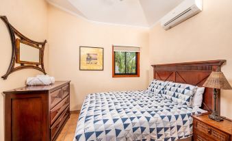 Spacious & Bright:High vaulted teak ceilings create an airy, tropical feel.