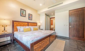 • Master Suite – King bed, private balcony with sunset views, spa bathroom with dual vanity, garden tub, walk-in shower, and walk-in closet (plus lockout owner’s closet)