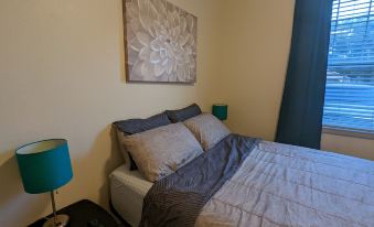 self check-in with keypad, master bedroom with adjustable queen size bed, Fully equipped kitchen (no oven).