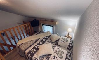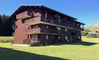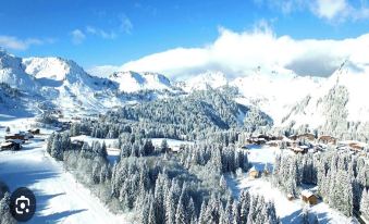 Emplacement parfait départ en ski juste à traverser la route ensuite nous sommes sur la piste où se trouve le télésiège Praz l’évêque et retour en ski devant la porte d’entrée du bâtiment Appartement 4 personne max max