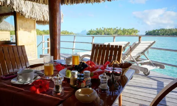 Couple of things spoiled our stay which surprised me given it is a luxury resort. The pick up boat was delayed by 40min causing us to miss the sunset. No real compensation was given for this despite we raised the issue; all we got was a welcoming rehearsed speech from the hotel manager that felt a bit fake. Bearing in mind that they charge ~6300xpf per person per way for the shuttle service, you’d definitely expect something better than this! Also the check in process took 30min, it was 5pm by then so it was unclear why it took them so long! We also felt that once we checked out all the niceness was gone; no music on the noisy shuttle back, no water/drink - it felt quite transactional. Finally the overwater bungalows need a touch up on the exterior as the harsh environmental conditions of them being exposed to water and wind daily have clearly left a mark! Overall good but I’d encourage the staff to make a couple of tweaks to make sure an excellent experience is guaranteed all the way from pick up through drop off at the airport.
