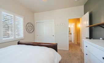 Queen bed, twin bunk bed, hallway bathroom, 55” SmartTV and a keyboard for the musically inclined