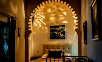 A l intérieur de la médina ce mignon riad, hyper bien décoré offre des chambres de grande surface, très bien équipé, hyper propre. L accueil agréable discret vous permet de vous poser tranquillement. Pour un petit prix c'est une très très belle expérience. Parking sécurisé à l extérieur de la médina qui est juste à 300 m du riad.