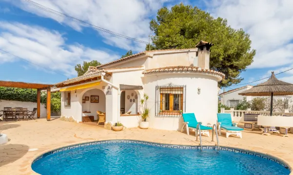 Villa "Carlota", accogliente. A 2 km dal centro di Moraira, posizione tranquilla, soleggiata quartiere signorile, zona a traffico limitato, a 1 km dal mare, a 1 km dalla spiaggia. Per uso privato: terreno 463 m2 (recintato), piscina (6 x 3 m, disponibilità stagionale: 01.Gen. - 31.Dic.). Terrazza, mobili da giardino, parcheggio (coperto). Negozio alimentare 1.7 km, supermercato 1.7 km, ristorante 2 km, fermata bus 1.8 km, spiaggia sabbiosa "Playa L'Ampolla" 1.5 km. Porto turistico 1.6 km, marina 1.6 km, campo da golf (12 buche) 1.8 km. Attrazioni nelle vicinanze: Aqualandia, Mundomar, Terra Mítica, Terra Natura, Benidorm Palace (Benidorm), Les Fonts de l'Algar, Castillo de Guadalest. Il proprietario non accetta gruppi di giovani.