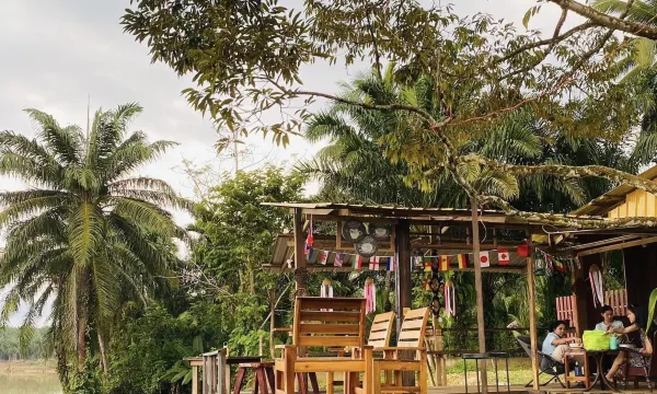 ริมคลองท่าแซะ สวย สงบ ร่มรื่น ท่ามกลางสวนปาล์ม เดินออกมาหน่อย มีร้านครัวหน้าบ้าน ร้านป้าอ้น ขนมจีนน้ำยาชุมพรกับข้าวหน้าไก่ อร่อย