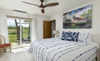 Ohana Hale showcases Big Island paintings of fine art by local artist Christian Enns (christianenns.com) who has a gallery at neighboring resort to the north, Hapuna Prince, as well as a studio and gallery in the neighborhood. Our home sleeps four with the primary bedroom having king sized bed, guest bedroom with two single beds, a living room with large couch and dining area which seats six. Enjoy a fully stocked kitchen, two bathrooms, washer, dryer, outdoor shower, air conditioning, and an outdoor BBQ. All linens and furnishings are newly refreshed. Most of the art on the walls is by local Big Island This property is an excellent space stay, play and relax while on the Big Island.