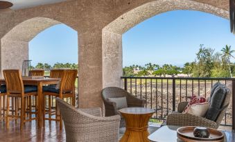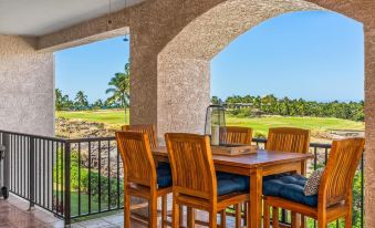 Resort life awaits you in the Shores at Waikoloa in this beautiful condo overlooking the golf course—only half of a mile from the beach. Cooling cross breezes and central A/C provide year-round comfort. The spacious layout ensures privacy for each side of the condo. The generous, wraparound lanai has plenty of room for grilling, dining, and entertaining with friends. Relax while taking in the partial ocean view and enjoying the sunset over Anaeho'omalu Bay.
