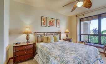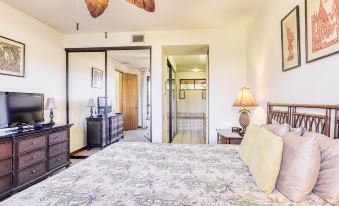 This ground-floor condo is perfect for a small family or two couples, offering bedrooms on either side of the condo as well as a large living and dining area in the middle where everyone can come together as they'd like. Prepare your morning coffee in the kitchen, relax out on the lanai, and watch passing golfers tee off from the box just across the lava rock. Relax in the community's swimming pool and hot tub, or fit in an invigorating morning workout at the tennis court, on the jogging trails, or in the open-air fitness center.