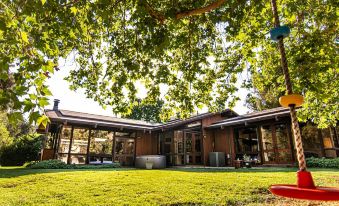 Amazing redwood Mid Century Modern custom home on the Kaweah River, floor to ceiling windows throughout. The kitchen boasts large countertops, custom cabinetry, a bar and a subzero refrigerator. A large dining area w/h custom built cabinets and tons of natural light. Each bedroom has it's master bath. Home is located on 6 acers, on the main fork of the Kaweah River. Only 4 miles from the Park Entrance and 10 minutes from shops and restaurants. Private rivers access!About pets:No pets allowed.About checkOut:Check out before 10:00 AM.About children:Children allowed: ages 0-17.About customRules:This is a shoe free home. Nos shoes allowed inside the house..No smoking allowed. No open fire anywhere on the premises..About checkIn:Check in after 4:00 PM.About smoking:Smoking is not permitted.About minBookingAge:Minimum age to rent: 21.About events:No events allowed.