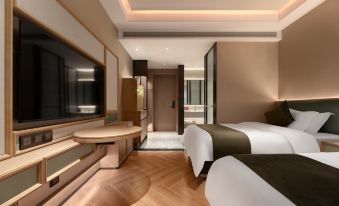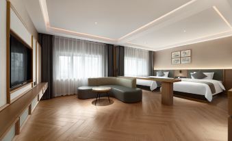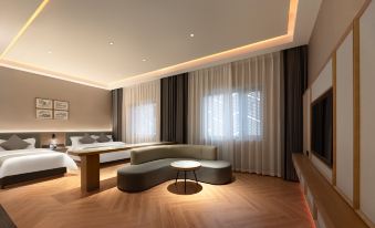 The hotel exudes a luxurious and light style, and the environment is as pleasant as a poem. It is equipped with a large parking lot. The rooms feature the original colors of bamboo and wood, presenting a natural and simple style with an elegant layout. The guest rooms are equipped with 55-inch LCD TVs. Delicate tea sets and tea products in the rooms make it a cozy resting place during your journey. The bedding is made of 60-count cotton yarn, which is soft and skin-friendly. In the carefully arranged guest rooms, a soft and fluffy bathrobe hangs quietly, looking forward to wiping away your fatigue and accompanying you to enjoy a pleasant time. The rooms are equipped with an intelligent voice system, and the bathrooms are separated into dry and wet areas. The breakfast room even serves Tianjin specialty snacks such as jianbing guozi (Chinese-style crepe), old-fashioned tofu, and guobacai. The hotel has a large free parking lot, allowing your car to be safely parked here.