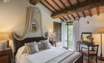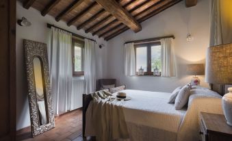 Villa Rosaspina is a traditional old oak-beamed Umbrian stone villa dating from the early 1700s. Standing on the Hills of Todi, in the Tiber valley natural park, it lies at the centre of one of Italy’s areas of greatest historical, artistic and cultural interest, and outstanding natural beauty. Surrounded by olive groves, vineyards and its own woodland with centuries-old oak trees is a perfect place for those who love privacy. From the windows you can admire the view of the stream flowing through the valley below. This villa comes with its own private 12x6m pool, set in magnificent rural surroundings for your exclusive use. You can sit under the gazebo by the pool and share the day’s discoveries with your friends via the villa’s DSL/Wi-Fi. The air conditioning in the bedrooms and the anatomical latex mattresses will keep you cool. The warm-welcoming atmosphere created by traditional materials and furnishings, beautiful antiques and paintings, will make this a truly relaxing holiday.