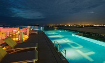 Its location is ideal for discovering Naha, with plenty of charming cafes nearby offering scenic sea views. One of the standout features of the hotel is the rooftop bar, where guests can mix their own drinks while enjoying the view. The hotel also comes with a stunning pool and a well-equipped gym, providing a great mix of relaxation and recreation.