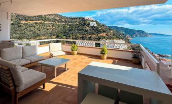 We really enjoyed our stay. The host, Elvira, was lovely! She has taken such care to make a wonderful property with requisite beach vibe, and all the thoughtful comforts of a top property! We SO enjoyed the amazing and huge veranda with the spectacular ocean view. We also appreciated that it was half covered so afforded some shade. Waking up to the ocean view was fantastic! A couple of points to note. The beach that is a 5min walk from the apartment is wonderful (steep walk back up the hill but doable, and you can also drive down).There is also a very well equipped grocery store and a very reasonably priced restaurant with sea view. Both are near the sandy beach. This is a gated community so no worries about leaving a rental car out. The apartment does not have any air conditioning which is totally fine with the sea breeze at 28 degrees but the bedrooms got very hot at 34 degrees. Our guest in the small bedroom slept on the veranda to stay cool which was also fun. Finally, travellers should be aware that it is a VERY steep and windy road back to Tossa de Mar, something you will only want to do once a day. However, there are plenty of reasons to just stay put and enjoy the apartment and amenities.