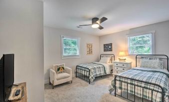 Escape to a serene retreat in Hiawassee, GA, and indulge in the luxury of our modern 3-bedroom, 2-bathroom vacation rental. This upscale home boasts a fully stocked kitchen, 5 Smart TVs, and a fantastic outdoor area with a private hot tub, shared fire pit, yard games, kayaks, and river tubes. Explore the nearby Chattahoochee National Forest, Lake Chatuge, and Helen for a memorable getaway.