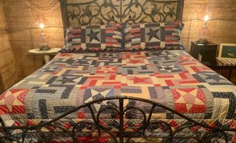 - The spacious master bedroom on the first floor has a king size bed, dresser and private closet with a separate entrance to the cabin's one bathroom.