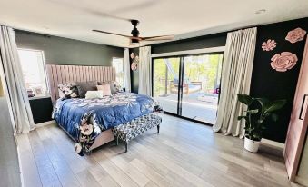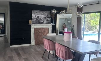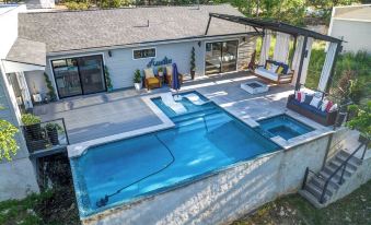 Gorgeous modern Austin home, perfect for a family wanting to get away, or friends wanting to relax by the pool! Private lake access just a 5 minute drive! 2 paddle boards included! Spacious living and kitchen area great for any size group with baby grand piano for entertaining! Large backyard for kids and pets! Enjoy the hot tub and pool year around (entire pool can be heated for your stay for additional charge)! Tesla charger available too! Washer and dryer included! 6 parking spots available!About pets:Pets allowed: dogs less than 50 lbs per pet (limit 2 pets total).$100/dog/ stay paid @booking, $500 for sneaking.About checkOut:Check out before 11:00 AM.About children:Children allowed: ages 0-17.About customRules:No wipes of any kind, even flushable, are to be flushed down the toilets. Please dispose of any baby wipes or personal wipes in bathroom trashcand..No tape tacs or any kind of tack, gummy or sticky or sharp object / material is to be used on the framed Johnny Cash mural in the kitchen.,No smoking in the house.About checkIn:Check in after 4:00 PM.About smoking:Smoking is not permitted.About minBookingAge:Minimum age to rent: 21.About events:Events allowed.Maximum event attendees: 9.