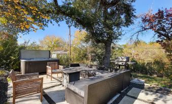 Relax and unwind at this distinctive and peaceful retreat. Tucked away in the serene hill country near Lake Travis, indulge in the charm of this remarkable home with its stunning modern and contemporary design. Delight in the hot tub and outdoor dining area, creating the perfect ambiance for a tranquil escape.About pets:No pets allowed.About checkOut:Check out before 10:00 AM.About children:Children allowed: ages 0-17.About checkIn:Check in after 3:00 PM.About smoking:Smoking is not permitted.About minBookingAge:Minimum age to rent: 21.About events:No events allowed.