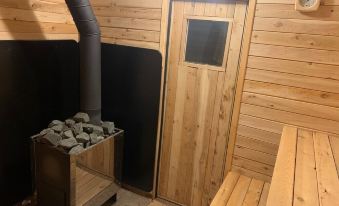 Walk out from the living room to the large deck where you can enjoy relaxing in the hammock. The entire outside area is flat, with lots of space for activities - a variety of outdoor games are provided. Wood for the sauna, fireplace or fire pit may be purchased at the Foodland or Home Hardware in Buckhorn (do NOT take wood from the surrounding bush, if trees are damaged you will forfeit you will be charged an additional fee).