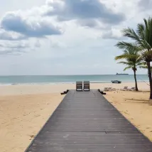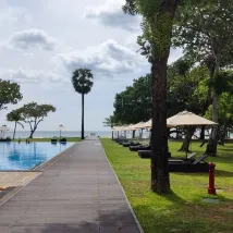 The only good thing is that it is beachfront. However, the beach is infested with crows and the crows will wake you up at 5am in the morning. The sand is also not as white, some sands are black.