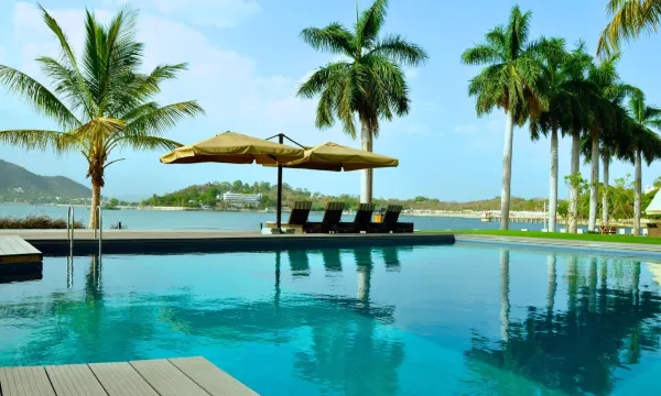 The hotel also provides a range of activities and facilities, including a clean swimming pool with a picturesque view, a spa, fitness center, and various water sports. Guests can enjoy relaxation and entertainment with options like themed dinners and live performances.