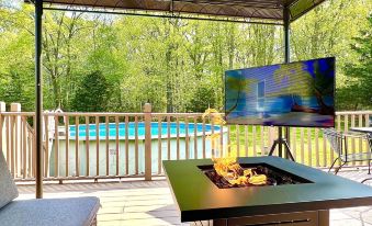 Enjoy our game room where you can sing karaoke, play over 3,000 classic games and write on our giant chalk board wall. Outside enjoy swimming in your own private pool, play a game of corn hole and hang on our deck for a relaxing time.