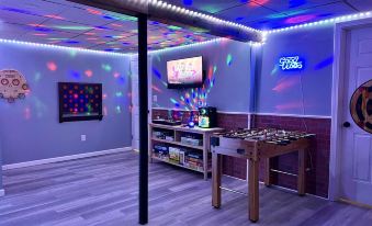 Very clean property with fun amenities - hot tub was already up to temp and easy to use; super fun game room with karaoke (complete with colorful mood lighting and large TV), arcade games and foosball; 3 smart TVs; an above ground pool with lounging inflatables.