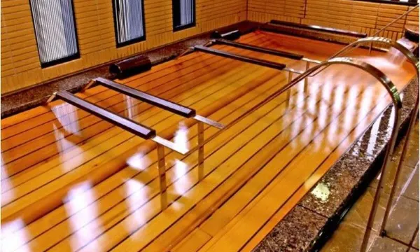 溫泉要通過天橋到對面大樓,溫泉水很熱,但可惜露天風呂並不是真的露天,因為周圍都有建築物,所以露天位置是有遮擋的,只能感受外面的冷空氣。