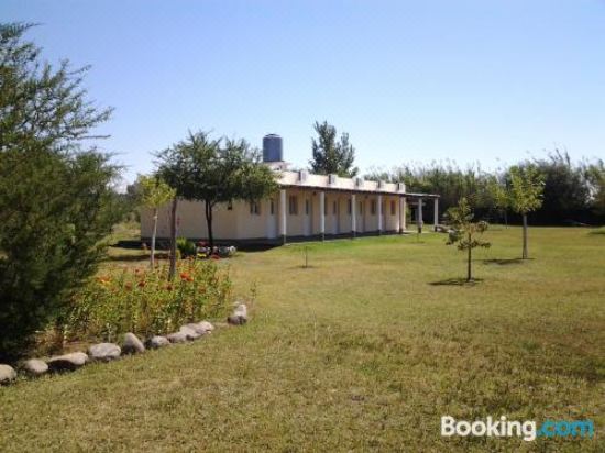 Muy buen alojamiento. Las cabañas son cómodas y están equipadas, tienen paga eléctrica y microondas. Todas las mañana dejan el desayuno (pan, dulces, te y café) que es muy rico. Hay un espacio común con mesas y algunos juegos y un parque muy lindo, además hay lugar para dejar los autos. Lo único es que el WiFi no anda muy bien, el resto perfecto! Debe ser el mejor alojamiento en Valle Fertil por lo que estuvimos viendo! Super recomendable