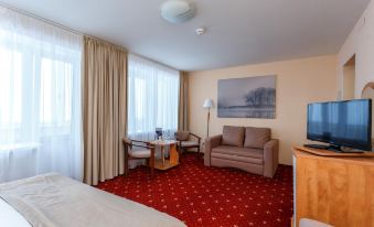 В таком отвратительном отеле не приходилось бывать ни в одном регионе России, а мы с мужем много где ездим. В номере грязно, обшарпанно, телевизор стоит на холодильнике(!!!), смотреть его неудобно. На кресле и стуле пятна(!!!). И стоит это номер 8000(!!!) в сутки!!! Как это возможно - такое низкое качество за такие деньги?! За 8000 ожидаешь, как минимум, чистоту и свежий ремонт. Из плюсов - был вкусный завтрак. Но(!) столов в зале ресторана было в 1,5 раза меньше, чем людей, люди пришли на завтрак и ждали, пока освободятся столы!!! Поэтому крайне не рекомендую этот отель