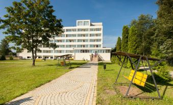 Плюсы 1.Расположение 2. Вид из окна на озеро 3. Текстиль в номере Минусов, к сожалению, гораздо больше. 1. Полное отсутствие шумоизоляции. Мне повезло: за стеной либо отсутствовали соседи, либо жили люди воспитанные. С остальными соседями повезло в меньшей степени. Хождение с раннего утра до поздней ночи: громкие разговоры и хлопанье дверьми. За 4 ночи выспаться не удалось ни разу. 2. Курят на территории гостиницы повсеместно. При этом, для этого есть специально оборудованное место. И никто из персонала не делает замечаний. Курят даже на крыльце. Никотиновая вонь была повсюду. А я - аллергик и это была серьезная проблема для меня. 3. Отель любезно принимает гостей с домашними животными, что замечательно. Но, почему то, персонал не следит за тем, чтобы хозяева убирали отходы жизнедеятельности за своими питомцами. Либо политикой отеля это вовсе не предусмотрено. Сама была свидетелем, как семейная пара с интересом рассматривала исторгнутое своей собакой, были опечалены результатом, но убирать не стали. И все это добро осталось на газоне. Просто чудесно. 4. Много писали о завтраке. Он достаточно разнообразен, но малосъедобен. Как может быть с утра заветрена овощная нарезка, например. Качество колбасных изделий также оставляет желать лучшего. Умудрялись испортить даже омлет. Вкусовые качества каш также не на высоте. Сахар класть в каши, в наше то время, это уже совсем моветон. 5. Ужин попробовала взять лишь однажды. Оказывается, завтраки еще весьма неплохи по сравнению с ужином. Ужин есть не смогла вовсе. 6. Про грязные балкон и ковровое покрытие в номере – писали неоднократно. Видимо администрация отеля на это не обращает внимание. У меня из номера был потрясающий вид на озеро. Но находится на самом балконе было неприятно. 7. Про гардины писали также неоднократно – повесьте уже соответствующего размера. Это не потребует значительных вложений. 8. Проблема с розетками, слабый WiFi, отсутствие чайника и элементарной посуды (в моем номере в наличии был один стакан) – об этом тоже много написано. 9. Холодный полотенцесушитель в ванной – это большая проблема: где сушить полотенца? Сейчас есть прекрасная альтернатива – электрические полотенцесушители. 10. Зеркало над столом – не понятно, какой функционал выполняет. Повесьте его в коридоре, больше толку будет. Итог Отель выживает только в силу своего расположения. Не уверена, что в следующий свой приезд снова остановлюсь в этом отеле.