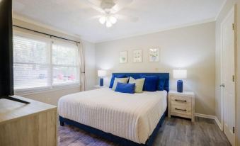 McRee Place includes a fully stocked kitchen & coffee bar, gorgeous electric fireplace, huge fenced in backyard, a grill & firepit, and plenty of outdoor seating. There are 3 cozy bedrooms furnished with comfortable beds and accessorized with warm and soft colors.