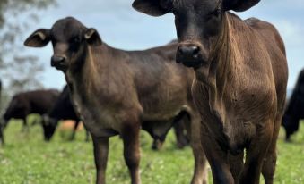 We have 3 large dogs on the property that have their own gated paddock seperate from guest yards. Also 3 cats that do not go inside. There are often cows in surrounding paddocks though not all the time.