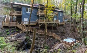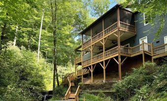 Step onto the balcony and let your gaze wander over breathtaking waterfall views — a scene that feels pulled from a dream. As twilight falls, gather around the crackling fire pit beneath a sky full of stars or soak in a bubbling hot-tub nestled by one of two waterfalls! For those craving a little adventure, you’re just minutes from the thrills of Harrah’s Cherokee Valley River Casino, multiple quaint towns, the serene shores of Hiwassee Lake, and the flowing beauty of the Hiwassee River. There are endless opportunities for adventures being in Western NC with TN & GA a short drive away!