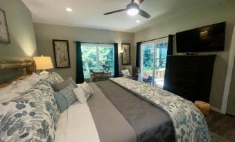 Each bedroom is a peaceful haven, thoughtfully appointed with cloud-like bedding with ensuite sparkling bathrooms stocked with plush towels, soaps/shampoos, and every amenity you need to pamper yourself. Modern luxuries like a washer/dryer, air conditioning, and heating ensure your comfort through every season, or sweet heavenly breezes through screened doors and windows!