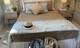 The cottage is located in a quiet neighborhood within walking distance of Main Street.It’s us stocked with everything you need !