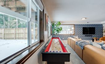 Bring the whole family to this spacious 6 bedroom home where a 70's vibe meets modern luxury. This remodeled home has beds for 14 people. 3,600 square feet of living space includes a fully-stocked kitchen, sauna, hot tub, and game room, it's sure to have something to cater to everyone! The Evergreen Retreat is your family's home away from home while visiting the Pacific Northwest.