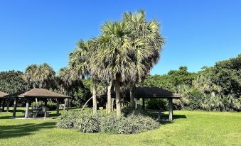 All but one of the following parks are located nearby Coral Cottage on the barrier island: Riverside Park offers huge green spaces, picnic areas, and a fishing pier along the Indian River Lagoon. Jaycee Park offers waterfront views and a boardwalk for relaxation. Let your dogs run wild at nearby Seaview Dog Park. Round Island Riverside Park, south of Coral Cottage on beautiful coastal highway A1A, is a notable destination for nature enthusiasts. It has a boat ramp and is great for paddleboarding, kayak eco-tours and manatee watching off the boardwalks. Just a few minutes' walk from Round Island Park, the Oyster Bar Marsh Conservation Area is great for hiking through the mangroves. McKee Botanical Garden, on the mainland, showcases lush landscapes and exotic plants.