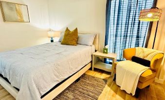 ☀ 4 bedrooms: 1 King Master Suite with 55” Smart TV, 2 Queen bedrooms, and 1 dedicated office with yoga mats & twin memory foam futon