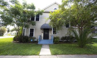 Beautiful 1905 Victorian home in downtown area. Large patio area. King Master-bedroom, two queen bedrooms. Spacious living room and room downstairs for board games, 500 Mbps wifi. Relaxing upstairs balcony with street view.